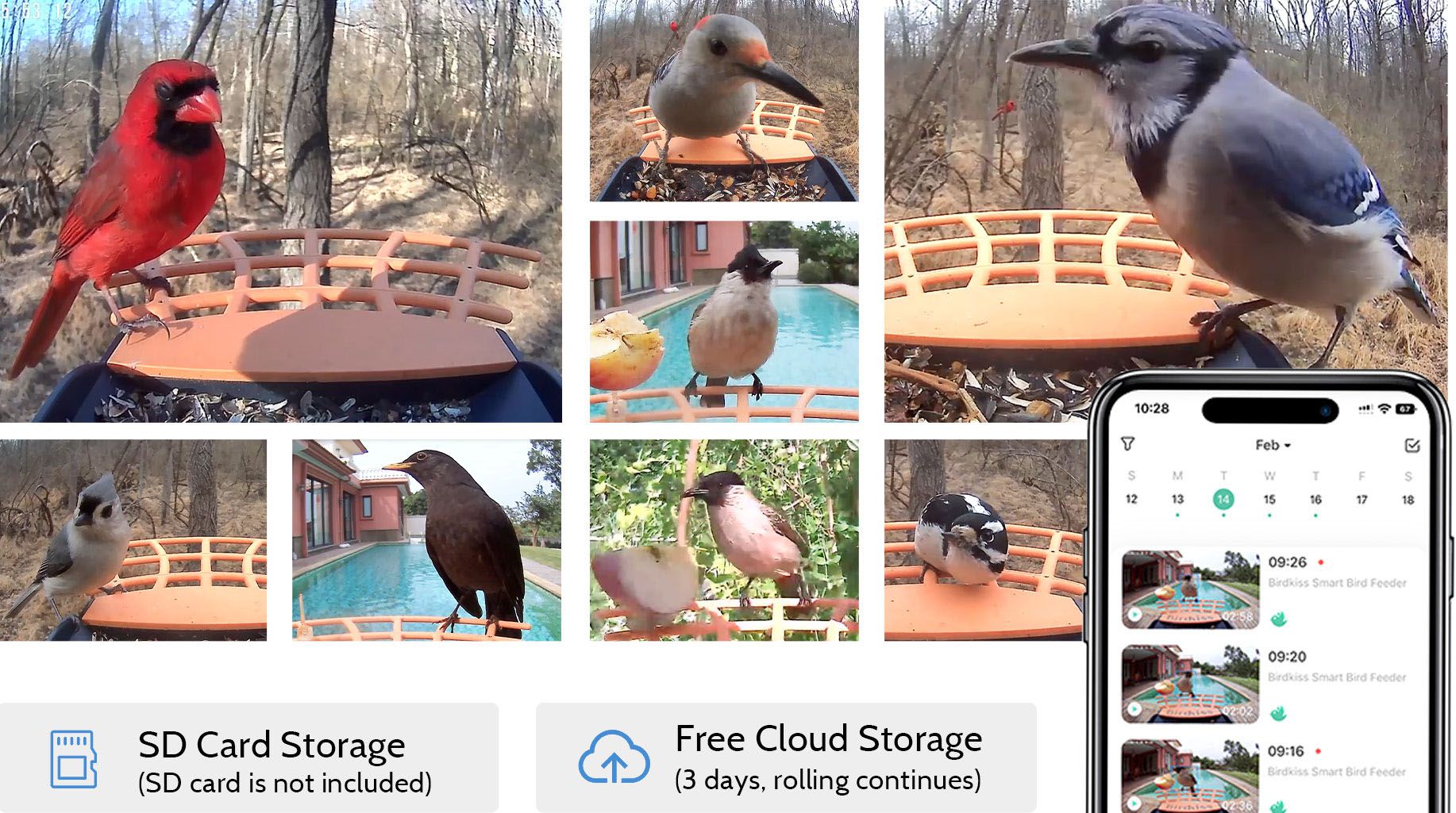 Birdkiss has industry-leading bird identification technology that can identify bird species. *AI recognition needs subscription plans starting at $2.99/month in App.
