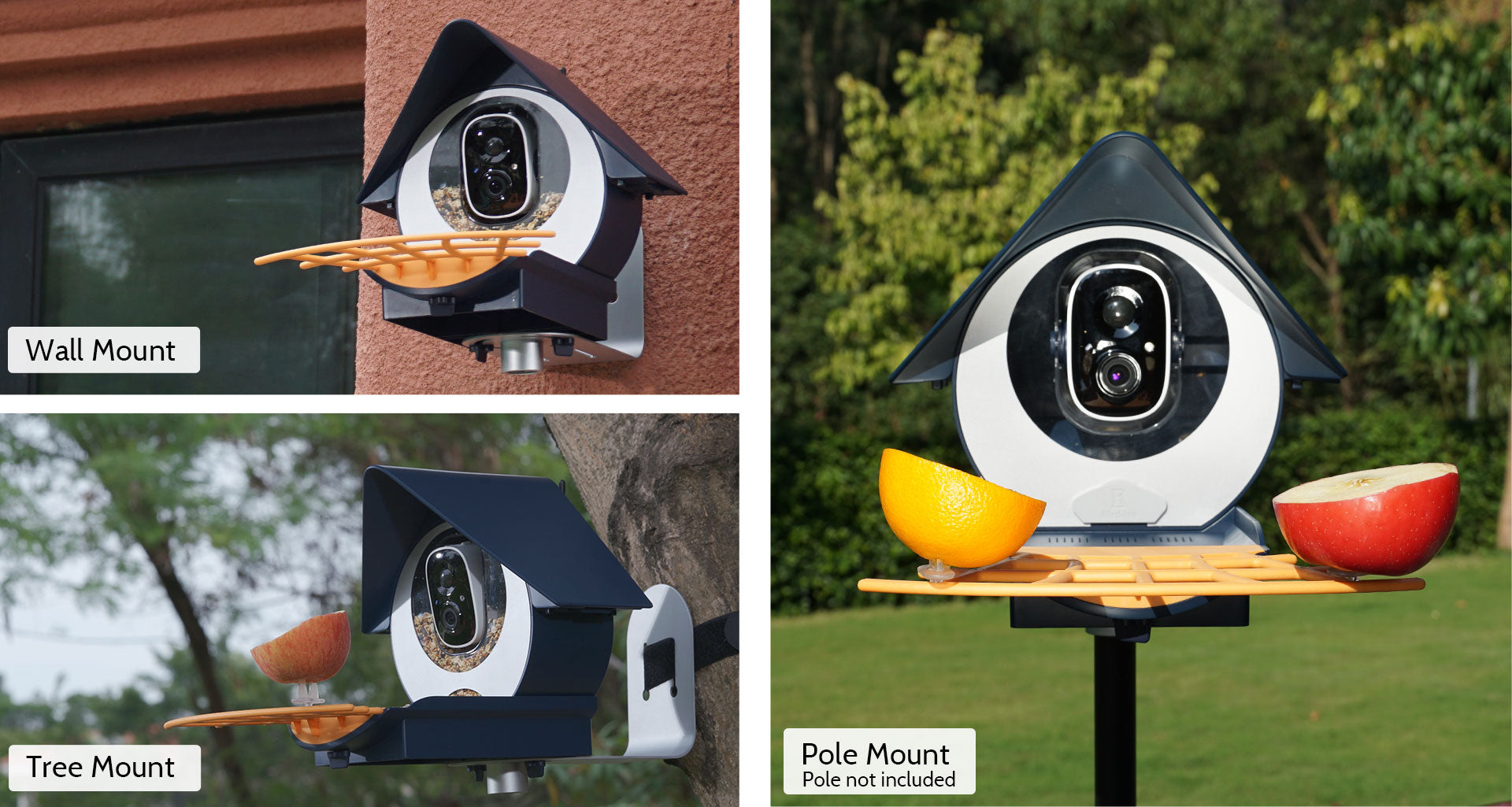 With our mounting bracket and bracket kit, Birdkiss can be firmly fixed on a wall, tree or standard-sized birdhouse pole with a 1"/ 2.55cm outer diameter. Pole not included in the package.
