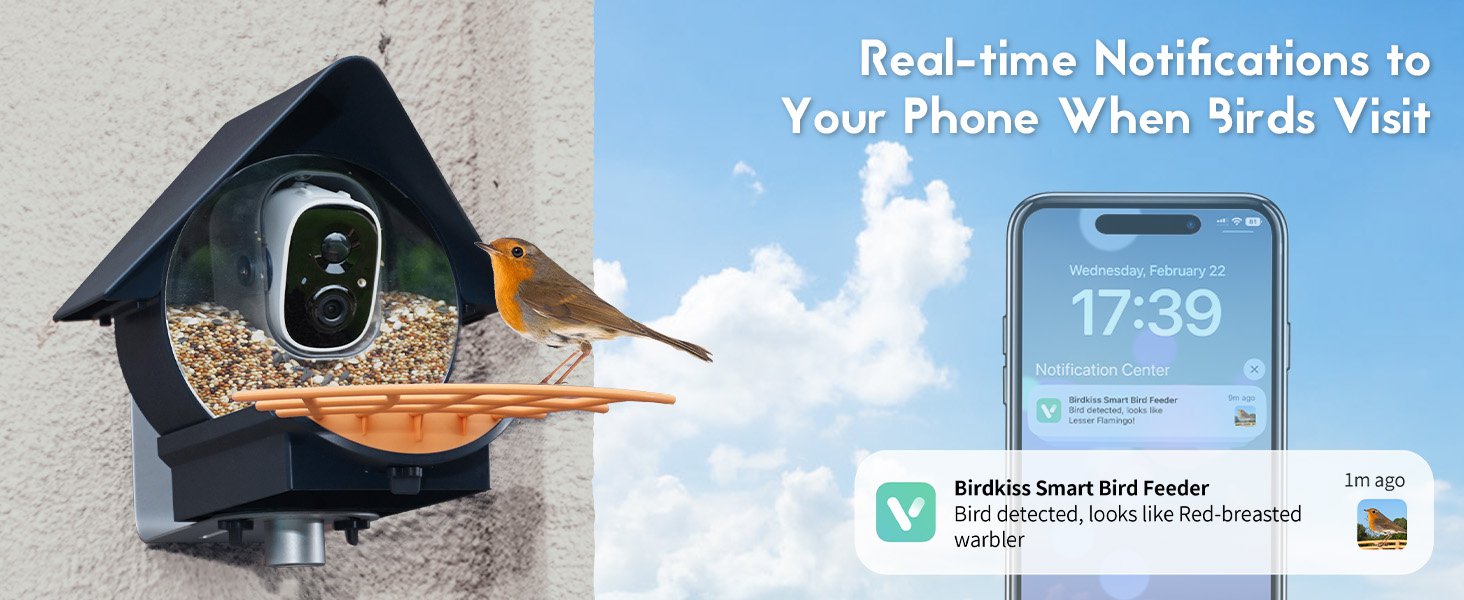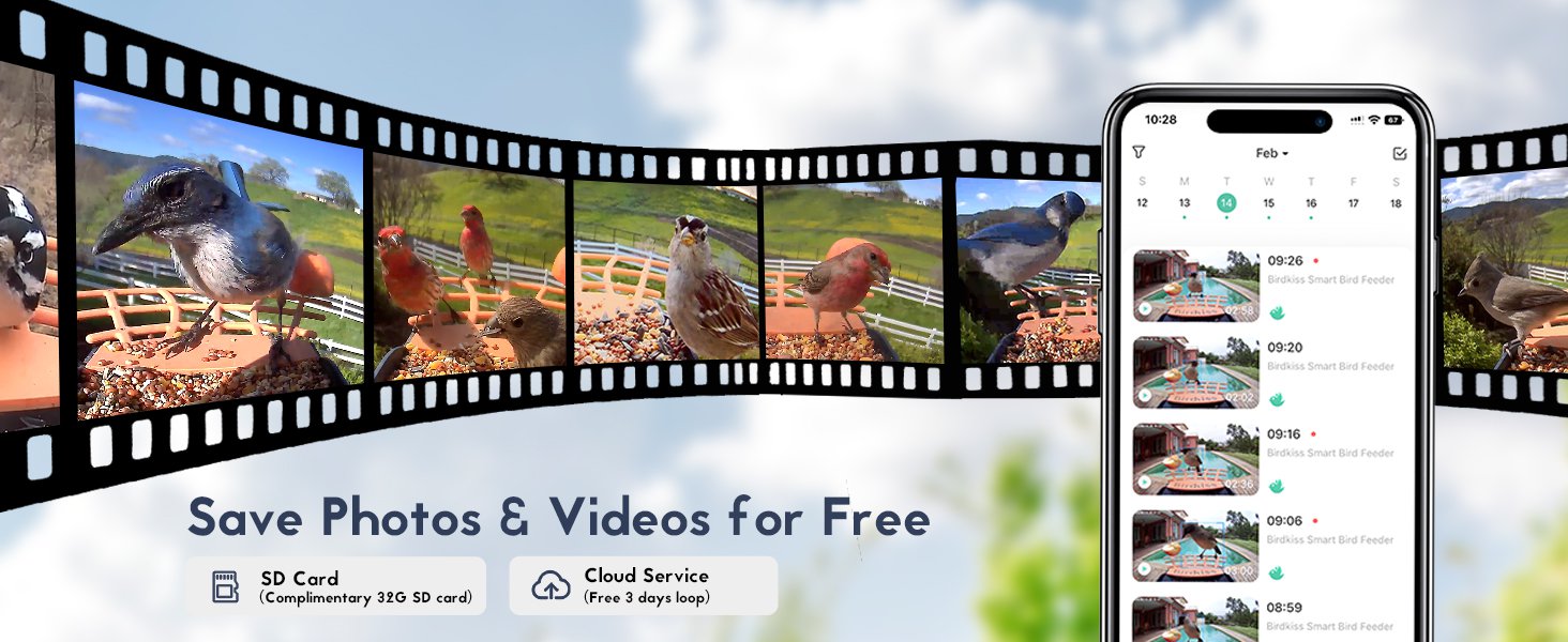 Experience immersive bird-watching, know the bird species in your yard, get premium bird videos and pictures, say goodbye to frequent charging, and attract more species of birds with Birdkiss smart bird feeder!