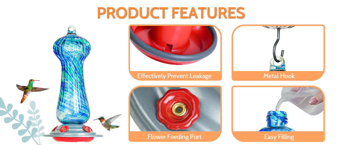- ATTRACT MORE HUMMINGBIRDS - When the feeder catches glimmers of sunlight, the hummingbirds feeder shines brightly, attracting more hummingbirds and keeping coloring to our garden