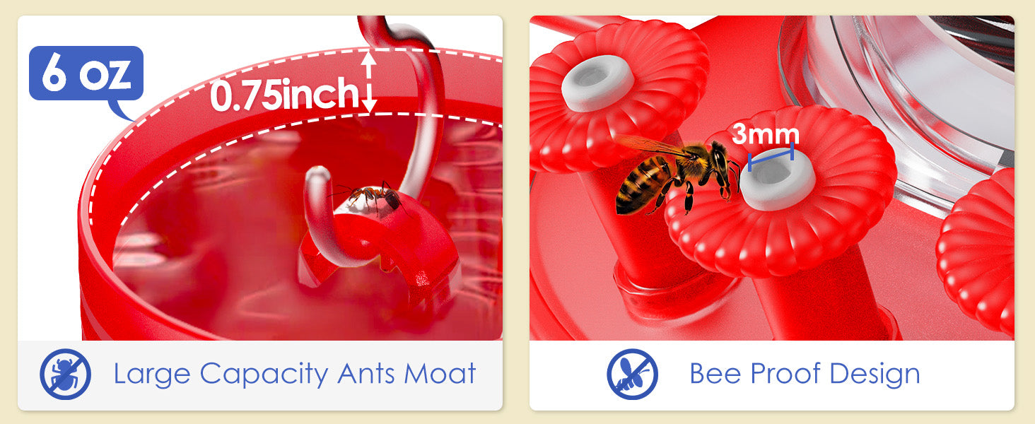 With its transparent design and vibrant colors, it's like a magnet for hummingbirds. You'll love how quickly they flock to it, and checking the nectar level is a breeze! Our feeder is a cinch to remove, thanks to its user-friendly upper and lower structure. We've thrown in cleaning brushes in two sizes! Cleaning the feeding ports and the feeder body very conveniently.