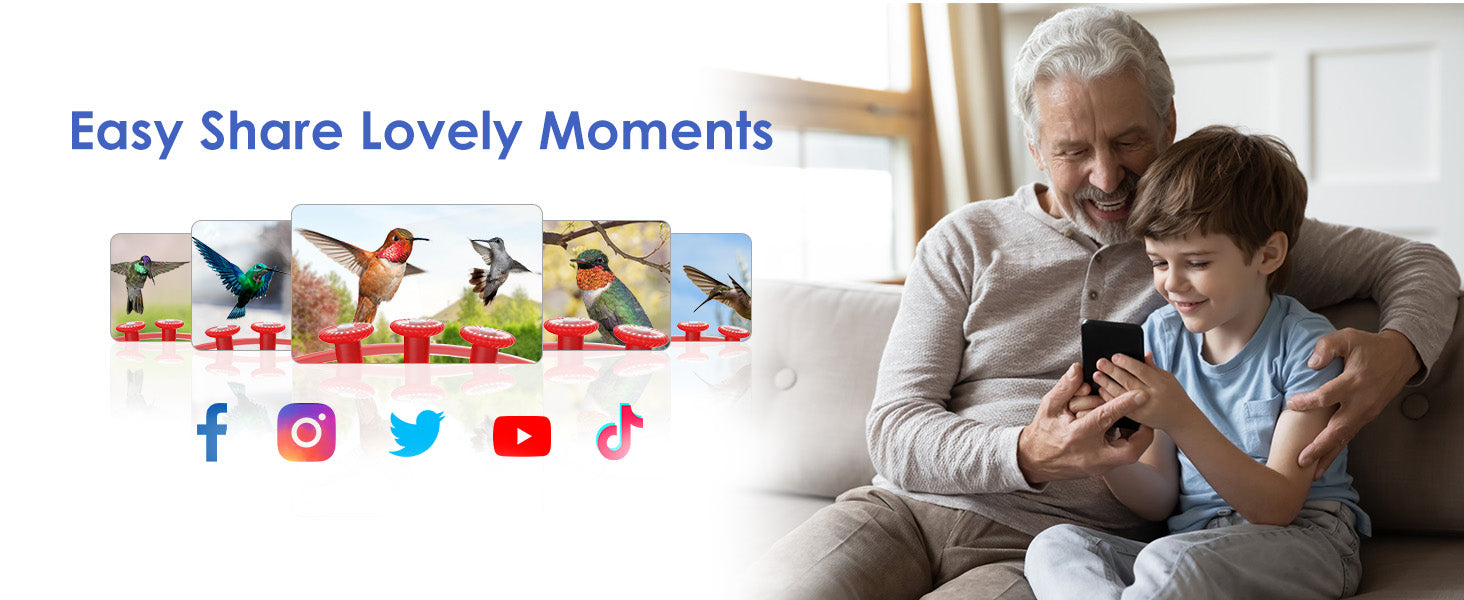 Looking for an ideal backyard gift for your parents or family? Consider the Birdkiss birdfeeder with camera for outside - a perfect choice that closer connections. Share captivating bird videos effortlessly with lovers and friends, all while staying connected through this camera hummingbird feeder.
